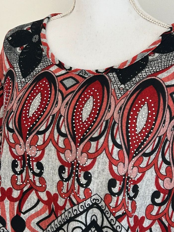Sweat Long Rouge et Noir avec Détails de Strass - Taille 42 - photo numéro 4