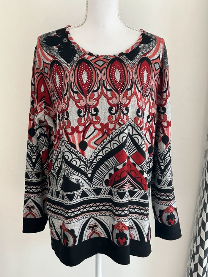 Sweat Long Rouge et Noir avec Détails de Strass - Taille 42 - photo numéro 2