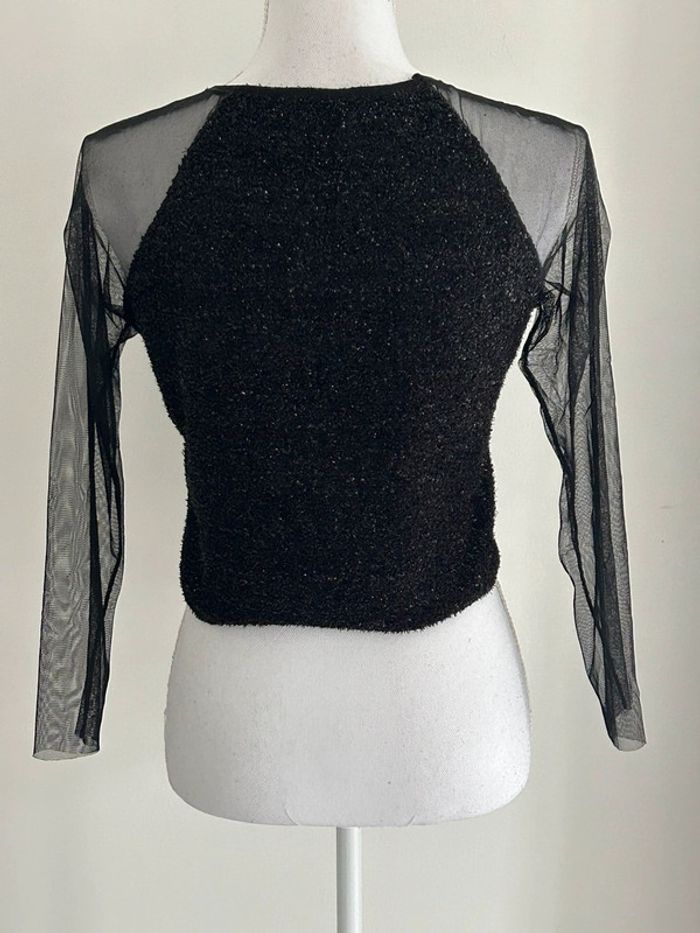 Top court noir, manches transparentes, taille 36 - photo numéro 2