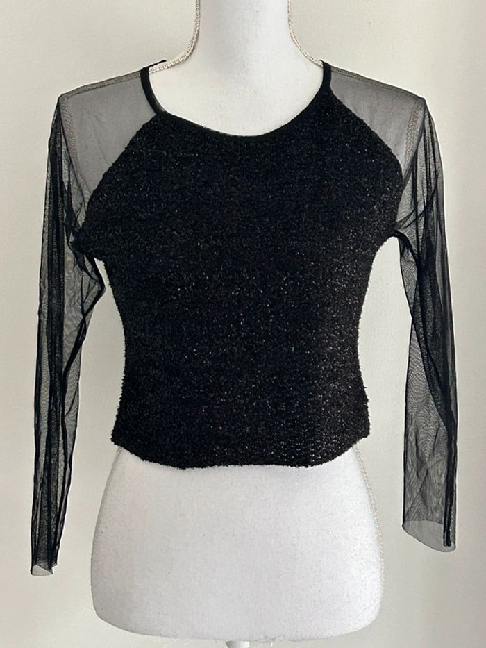 Top court noir, manches transparentes, taille 36 - photo numéro 1