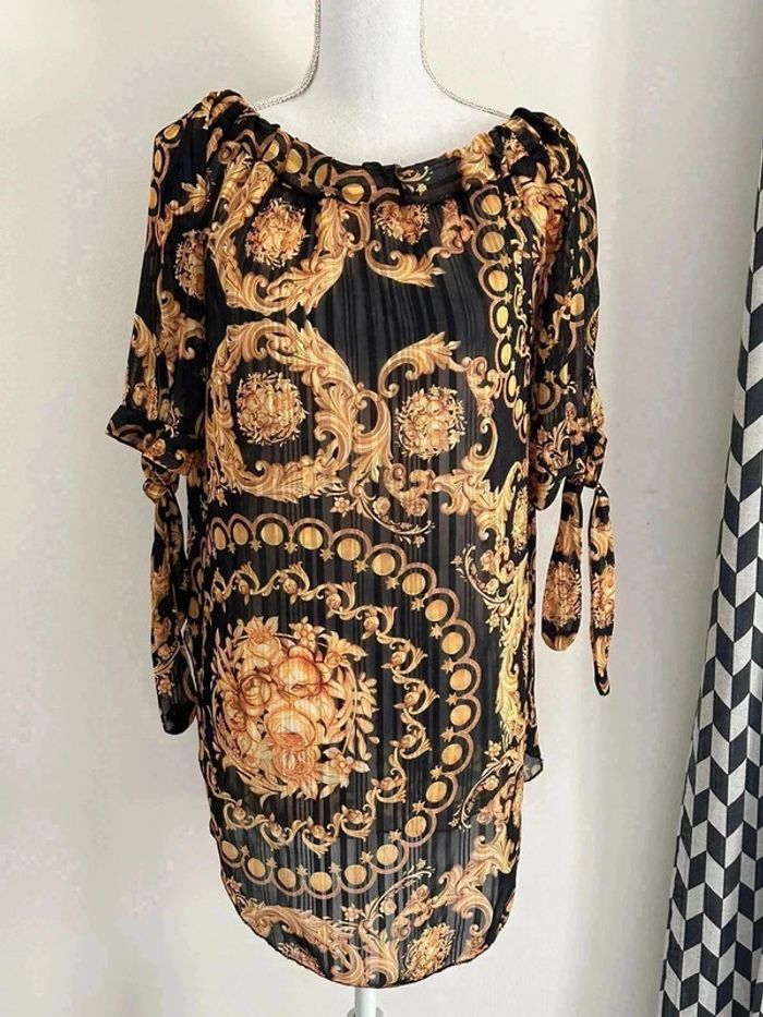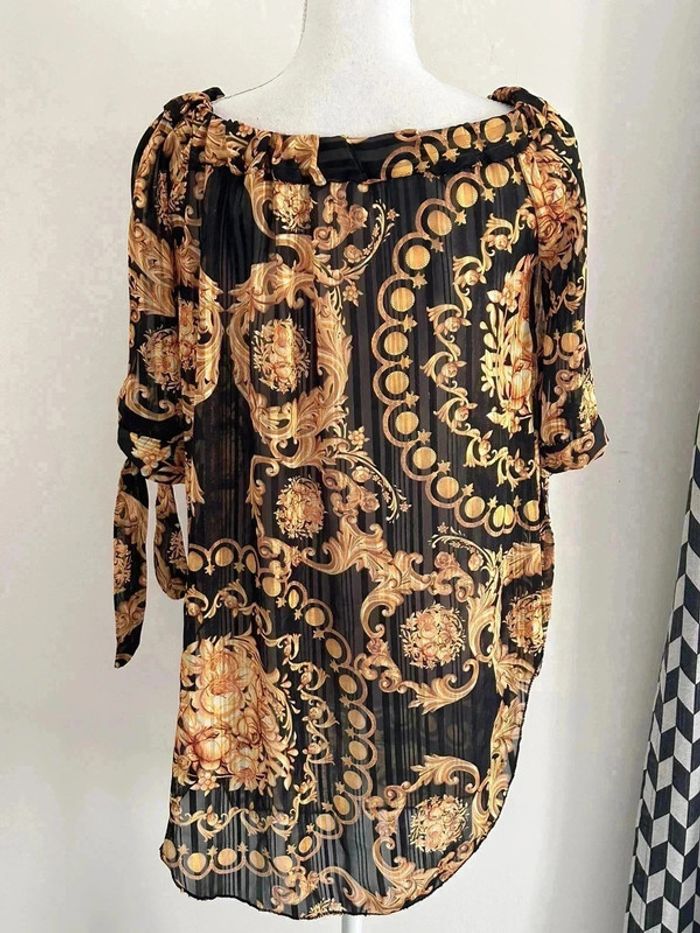 Blouse transparente noir et dore taille 38/#L29