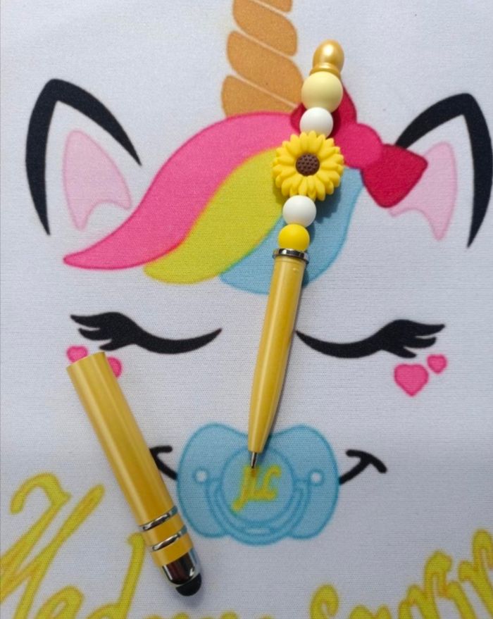 Stylet Marguerite tactile pour téléphone, tablette, ordinateur etc doublé d'un stylo encre noir 100% personnalisable en silicone alimentaire et/ou bois naturel. Énormément de choix pour les composants, envoyez-moi un message sur un de mes réseaux sociaux présents en bas de page afin de créer main dans la main votre accessoire idéal. Une photo du prototype de celui-ci vous est envoyé pour validation avant envoi.