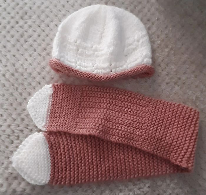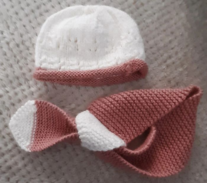 Bonnet écharpe laine fait main 0-6 mois - photo numéro 1