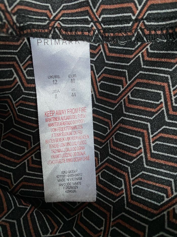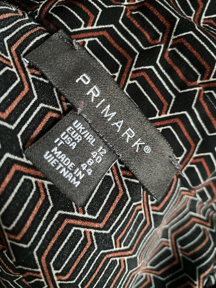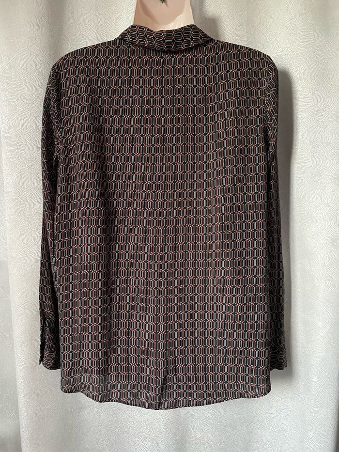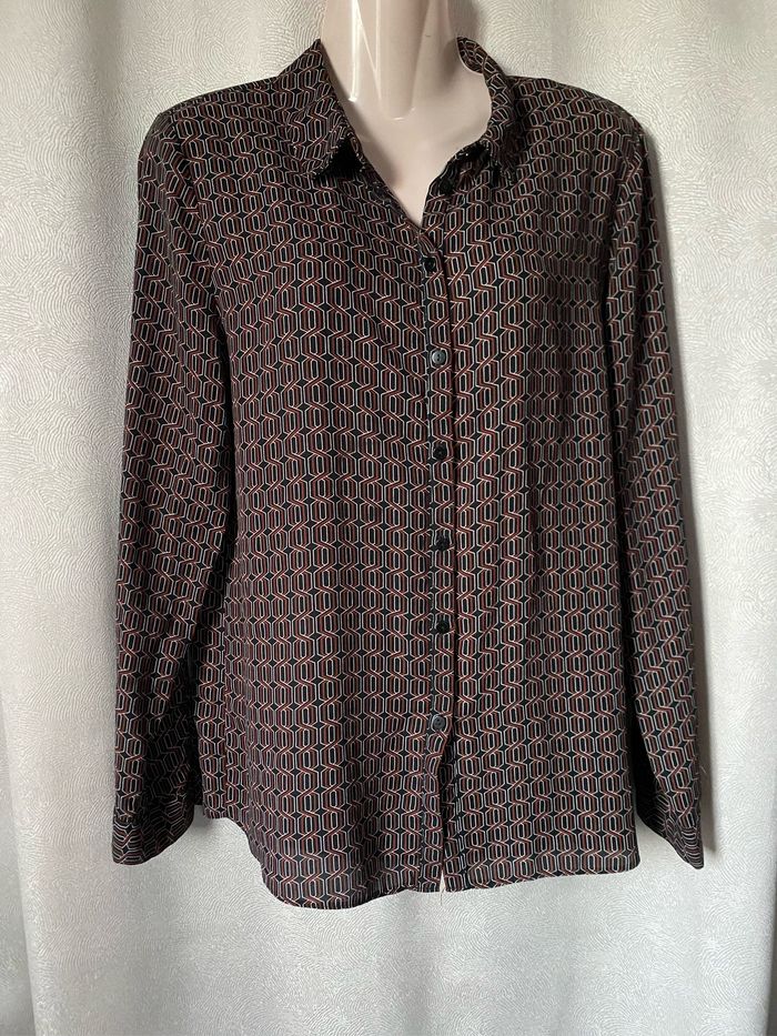 Chemisier Liquette léger en parfait état manches longues pour femme Imprimé psyché noir blanc marron 100% polyester Taille 40 Primark La carrure mesure 39,2 cm Aisselle à aisselle 52 cm Longueur devant 68 cm, 72 cm pour le dos