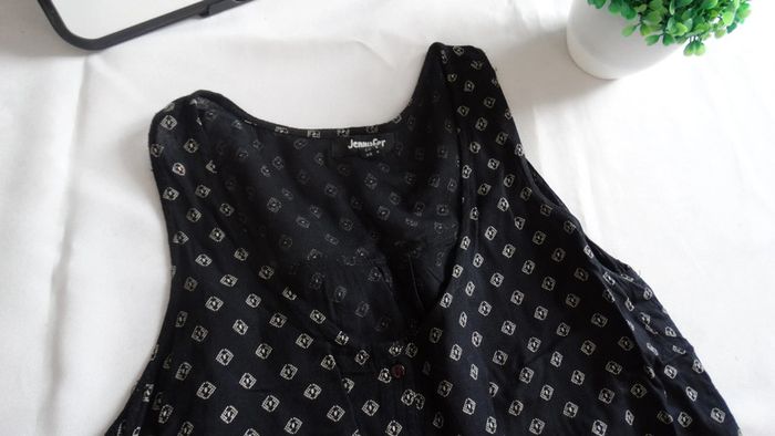 Débardeur noir Motifs losange blanc Fermeture à boutons Lien de serrage à la taille " voir photos " Col en V Jennifer Taille S