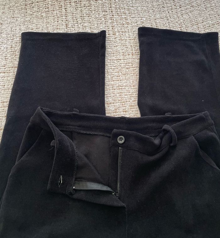 Pantalon noir côtelé, poche sur les côtés taille L porté 1 fois TBE Tour de taille 43 cm Hauteur de la taille 26 cm Longueur des jambes 68 cm #sandra13190femmestailleL #sandra13190femmestailleXL #sandra13190chapeau_accessoire_bijoux_sac