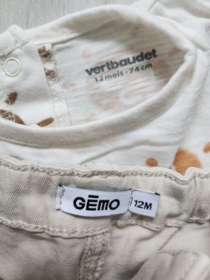 Ensemble quasi neuf : - 1 Short Gemo neuf - 1 T-shirt Vertbaudet porté 1 fois Taille 12 mois