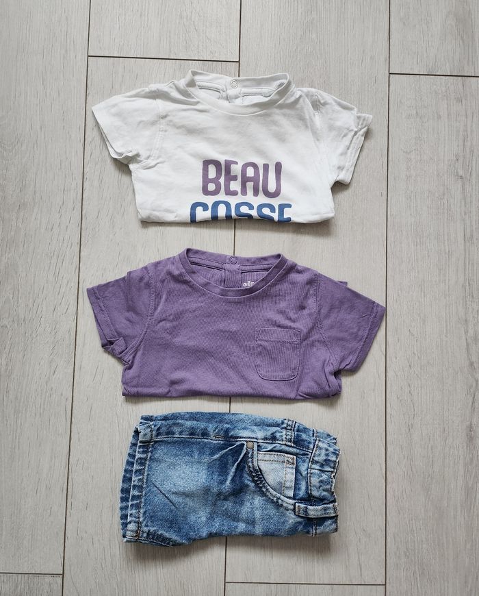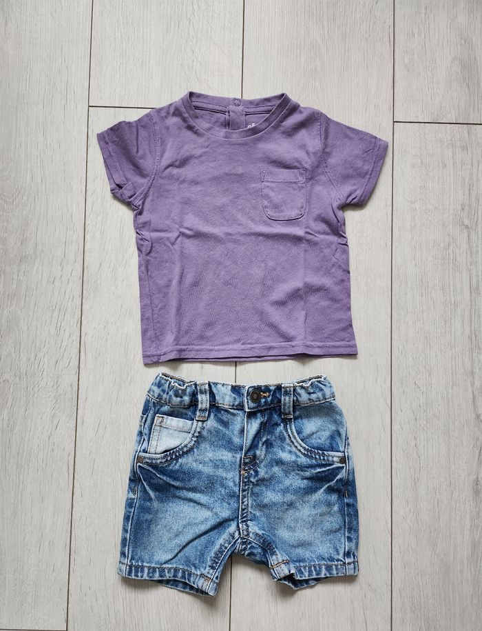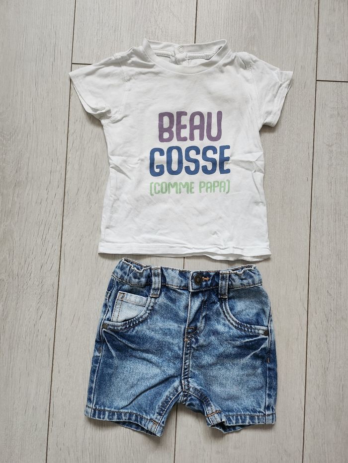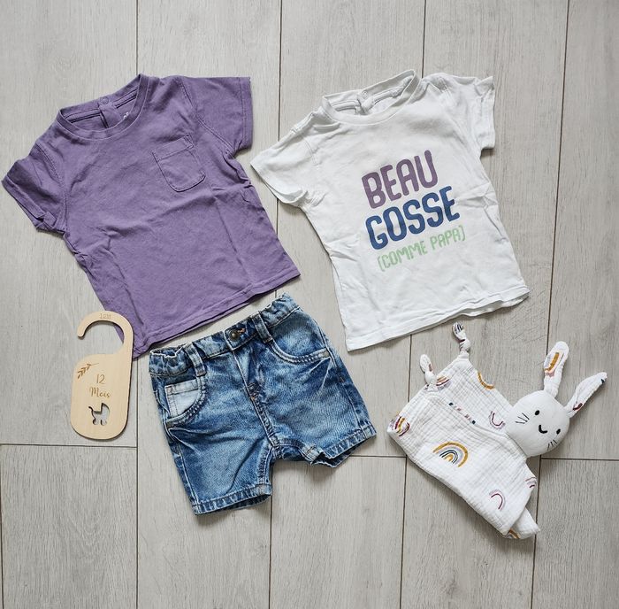 Ensemble short et T-shirts MC trop mignon en parfait état. Très peu portés. Taille 12 mois.