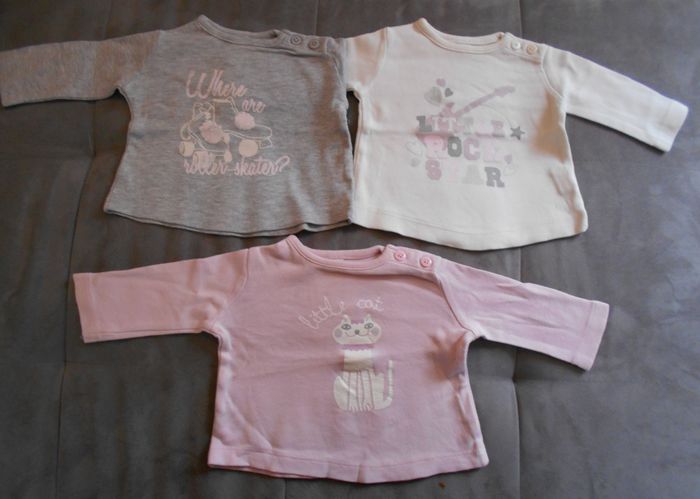 3 T-shirts à manches longues pour fille Taille 3 mois Très bon état