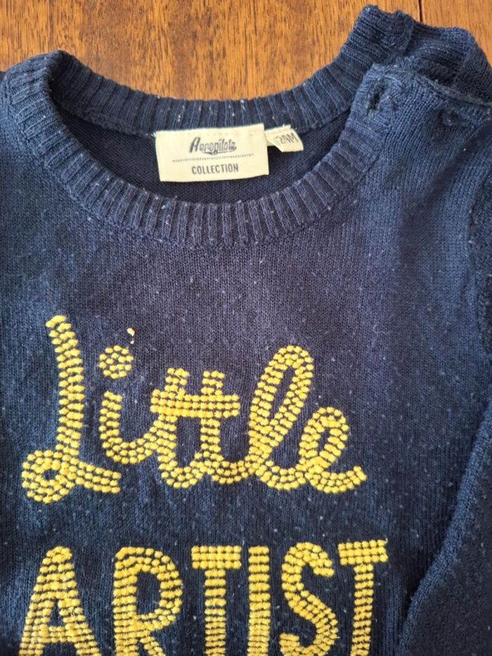 Taille 86 cm 24 mois Pull maille légère. En bon état, avec quelques bouloches. Marque aeropilote. + Pantalon sergent major. En très bon état, mais une trace à l'arrière du pantalon (voir dernière photo). #qwerty94350garcon24mois