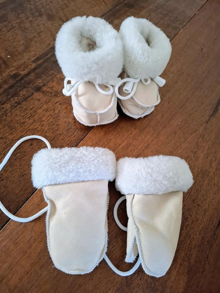 Ensemble moufles et chaussons fourrés- cuir italien