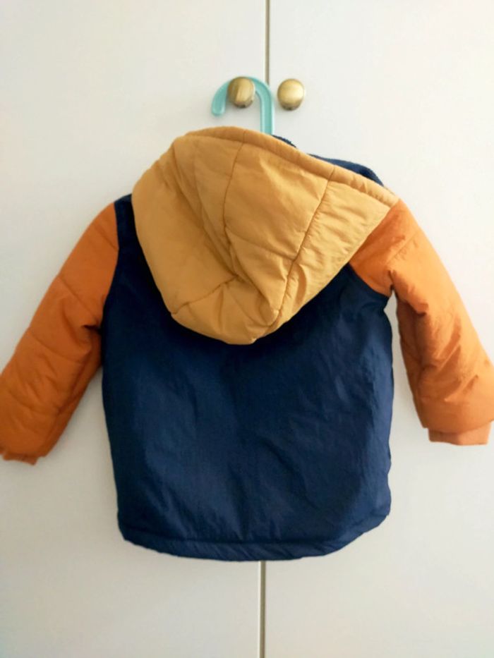 Très peu porté, en parfait état. - Dos et capuches doublé polaire - Bleu Marine et Camel - Manteau imperméable, façon doudoune. - Fermeture zippée+ pressions. - Taille 12 mois : il y a de la marge pour passer sans problème des épaisseurs en dessous (notre fils portait du 18 mois en vêtements et le manteau lui allait encore). #manteaugarcon12mois #manteaubebe12mois #doudoune12moisgarçon