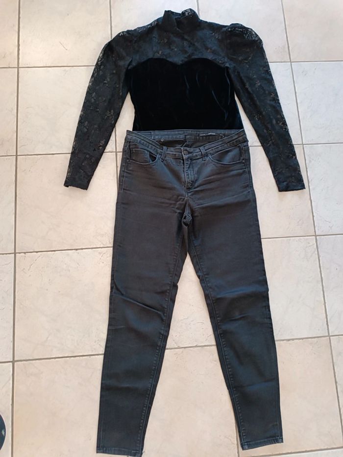 🖤 ensemble composé d'un body noir et d'un jeans slim gris🖤 🖤 Body noir en velours et dentelle avec manches bouffantes, manches longues. Taille S Neuf sans étiquette, jamais porté Marque primark #dentellenoire #dentelle #velours #body #primark #clau_d1a #clau_d1a_taillem #clau_d1a_hiver #clau_d1a_soiree 🖤Jeans skinny, medium Rise, slim fit Couleur gris foncé Taille 42 Marque Zara Très bon état #zarawoman #zara #jeanskinny #jeansfemme #grisfoncé #taille42 #clau_d1a #coton #élasthanne 📨 Envoi rapide et en petit format ⛔ Je n'accepte pas les retours, échanges ou remboursements. Merci de revendre l'article si celui-ci ne vous plaît/convient pas 🖤 Je souhaite 25€ pour l'ensemble 🖤 #clau_d1a_pantalonetjeans #clau_d1a_zara #clau_d1a_taillexl #clau_d1a_hiver