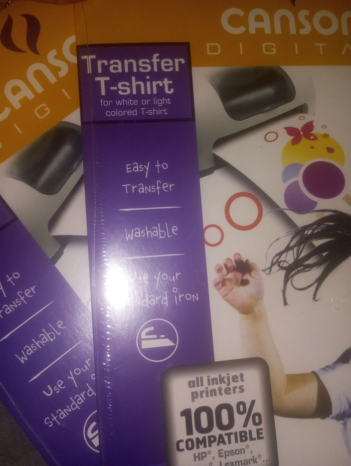20 feuilles canson A4 pour transfert sur tee shirt ,casquette ou autres compatible HP,Epson,canon,lexmark .... Neuf sous blister