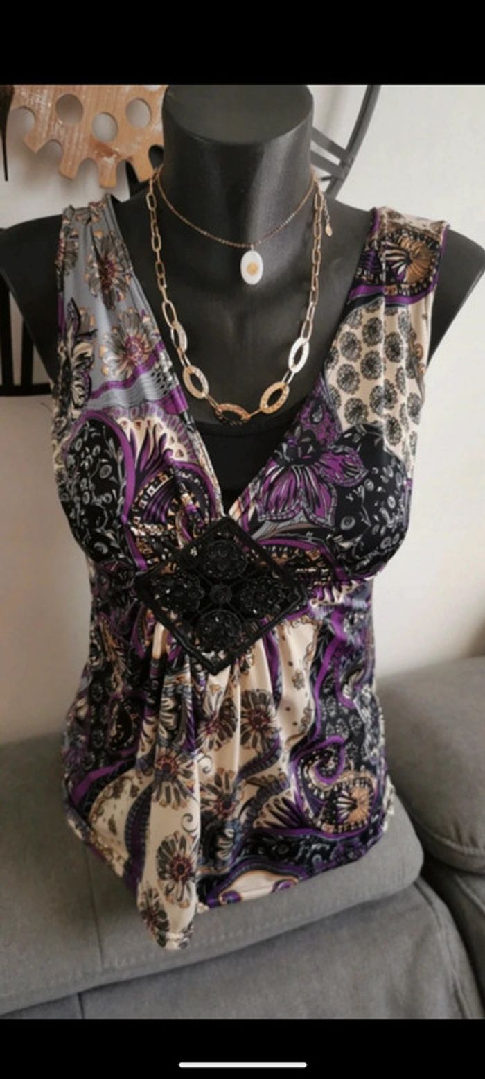 Très beau haut top débardeur blouse manches courtes S - photo numéro 3