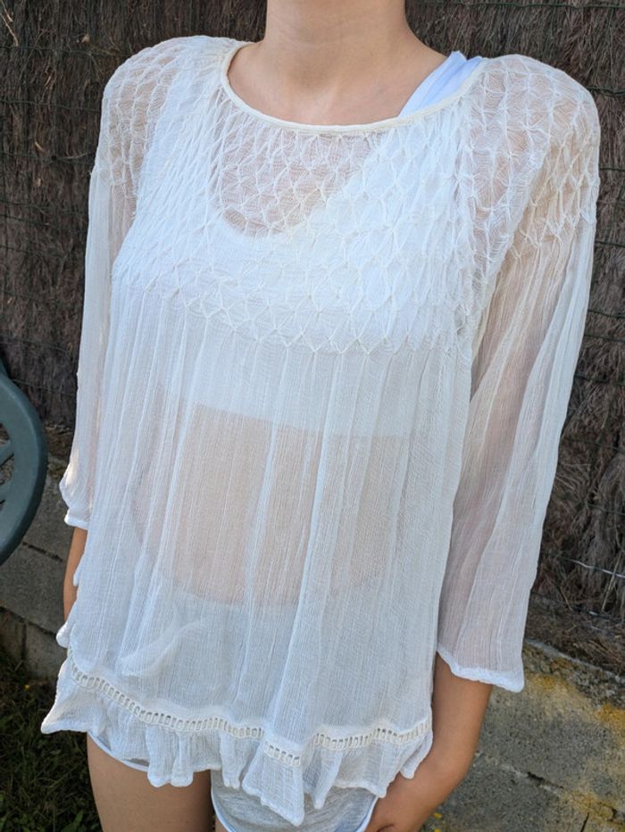 Mango m Blanc dentelle broderie