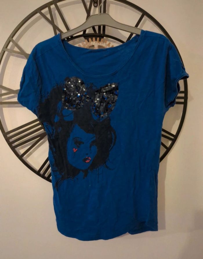 Tee shirt femme 🌿 imprimé bleu noir carton rubics