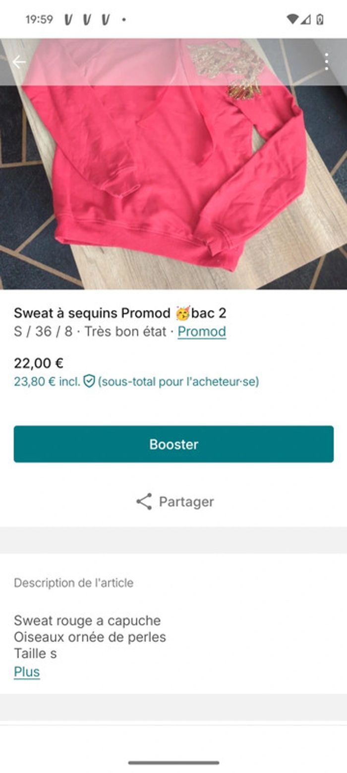 Sweat à sequins Promod rouge bac 20 - photo numéro 4