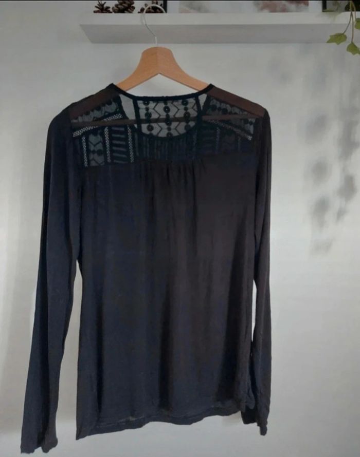 Blouse haut top manches longues Promod noir dentelle - photo numéro 1