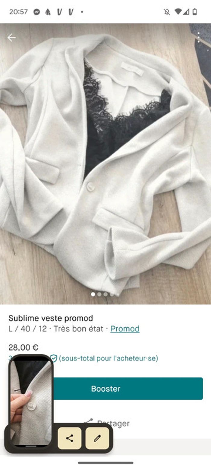 Sublime veste souple Beige grise fils brillant A vendre car trop grande donc à regret vraiment