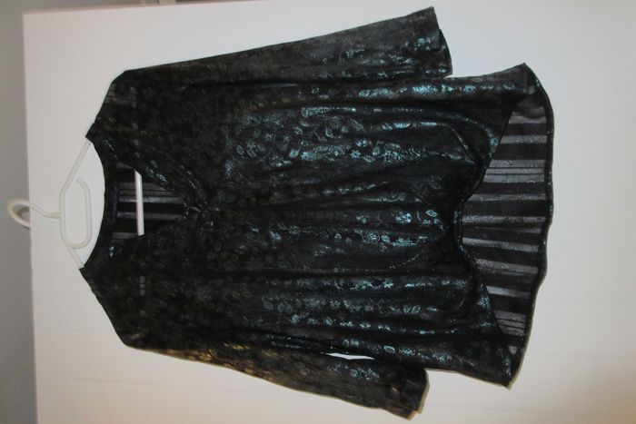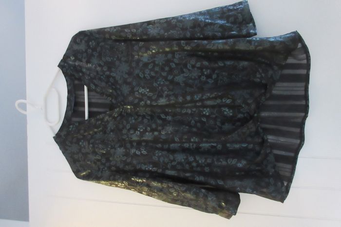 blouse noire, motif vert, semi transparente, taille 38 Cache cache
