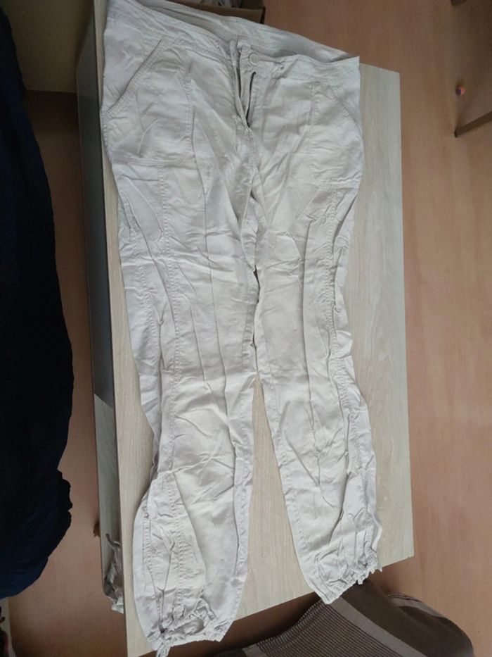 Pantalon lin blanc beige taille 42 - photo numéro 1