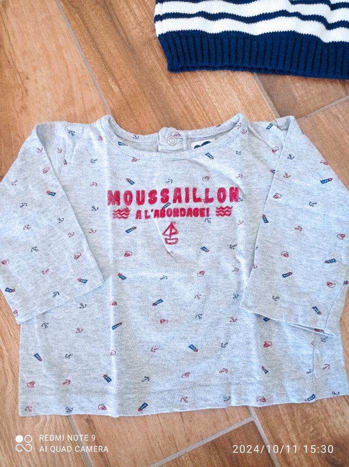 Ensemble 9/12 mois jogging bleu+polo bleu+ tee-shirt moussaillon+ pull marinière - photo numéro 14