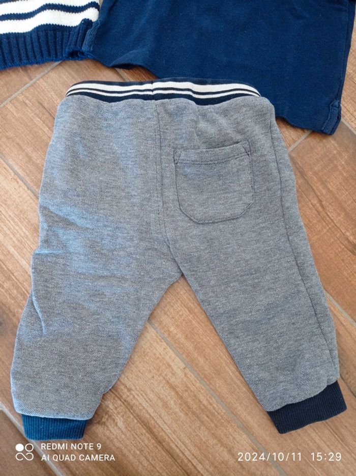 Ensemble 9/12 mois jogging bleu+polo bleu+ tee-shirt moussaillon+ pull marinière - photo numéro 8