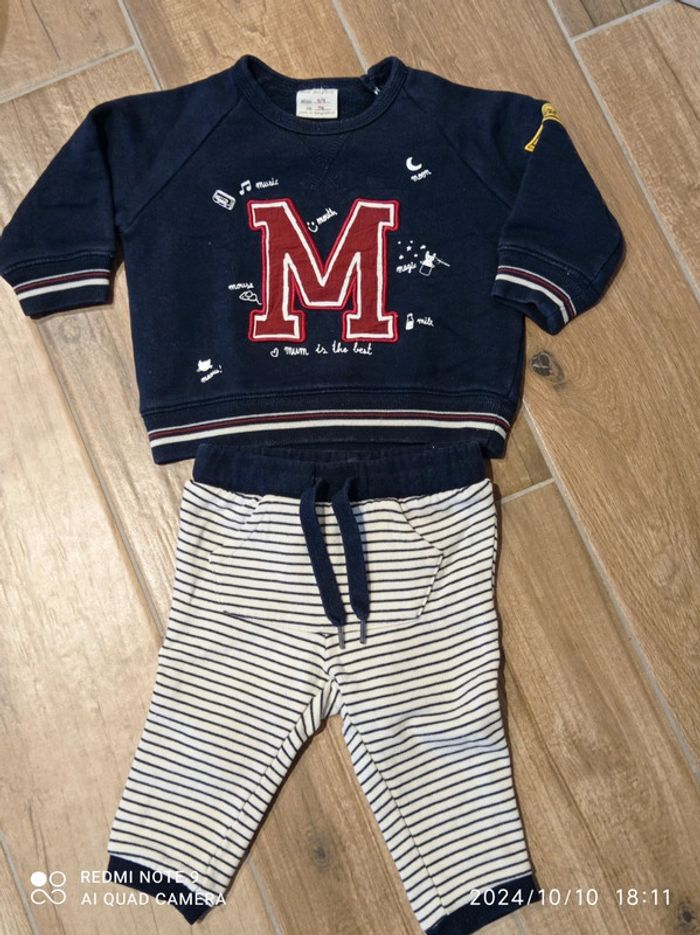 Ensemble 9 mois jogging marinière et sweat marine brodé M