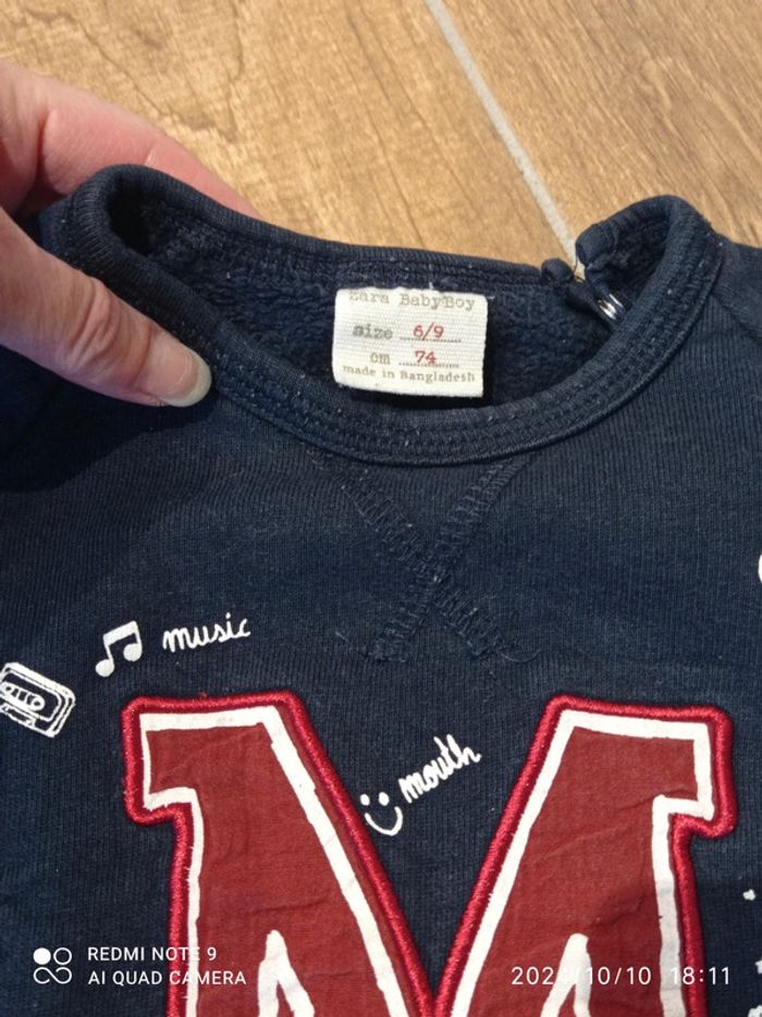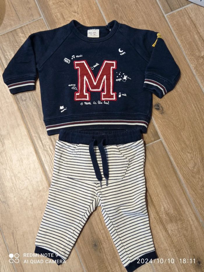 Ensemble 9 mois Bas jogging rayé marine et blanc Kiabi Sweat marine brodé M rouge Zara 6/9 mois