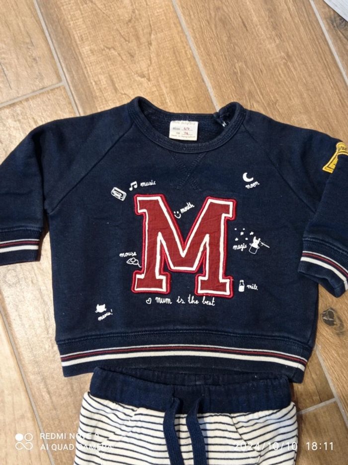 Ensemble 9 mois jogging marinière et sweat marine brodé M - photo numéro 3