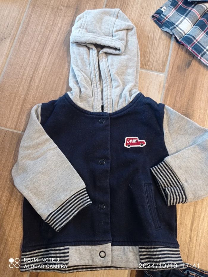 Ensemble 9 mois, jean+ tee shirt blanc+ chemise carreaux+ veste sweat zippée - photo numéro 11