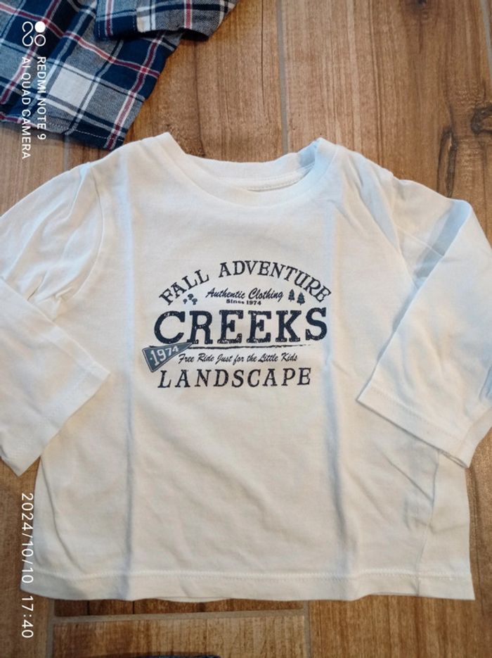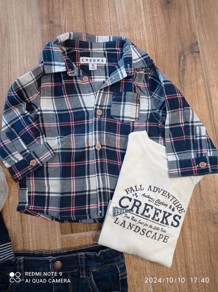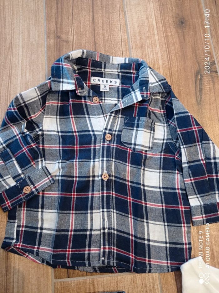 Ensemble 9 mois, jean+ tee shirt blanc+ chemise carreaux+ veste sweat zippée - photo numéro 2