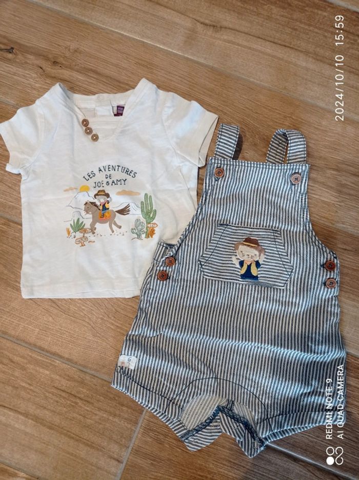 Ensemble salopette rayée bleu/blanc+ tee shirt 6 mois Sergent Major