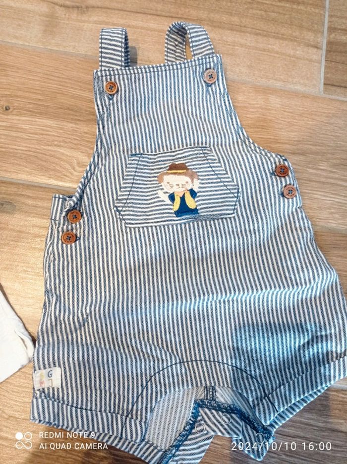 Ensemble salopette rayée bleu/blanc+ tee shirt 6 mois Sergent Major - photo numéro 9