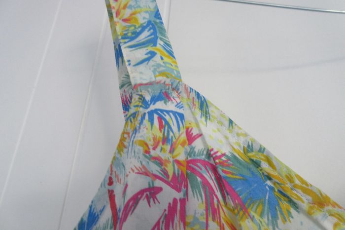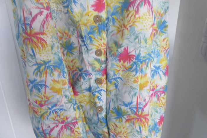 robe d'été motif tropical, fines bretelles, taille 38 CacheCache #flodolphy_taille38