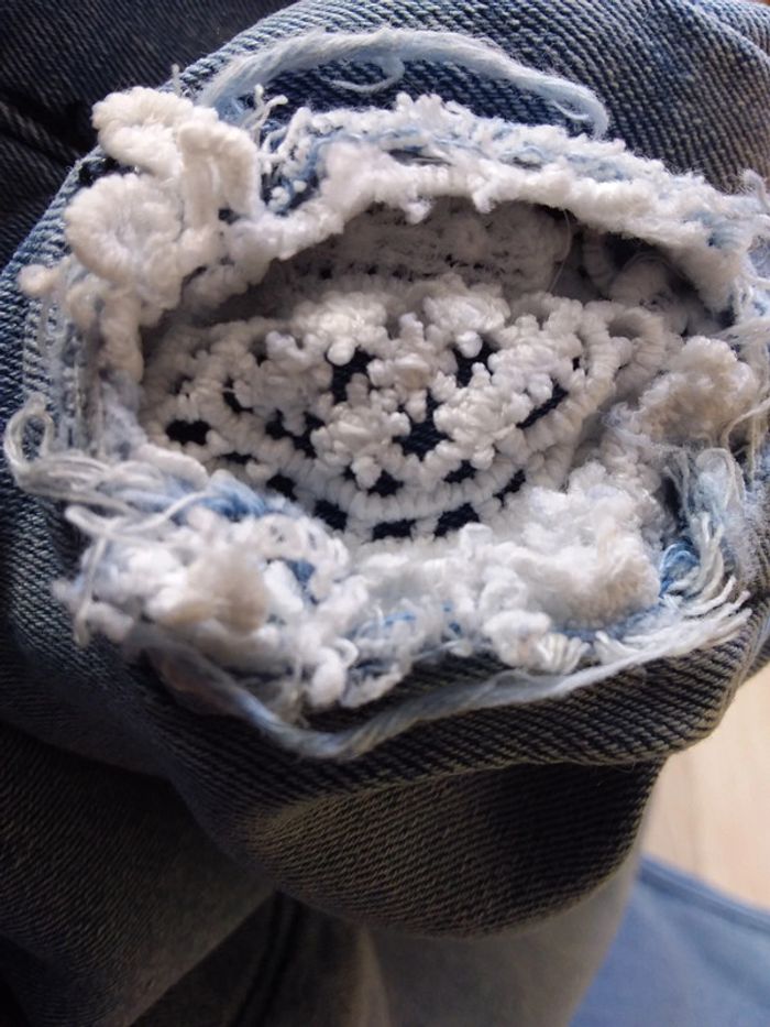 Salopette en jean en excellent état Fermeture par pressions, bas effilochés Détails " dentelle" #mamoune1906_fille_8ans