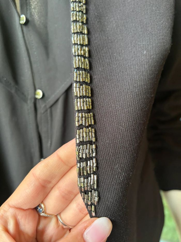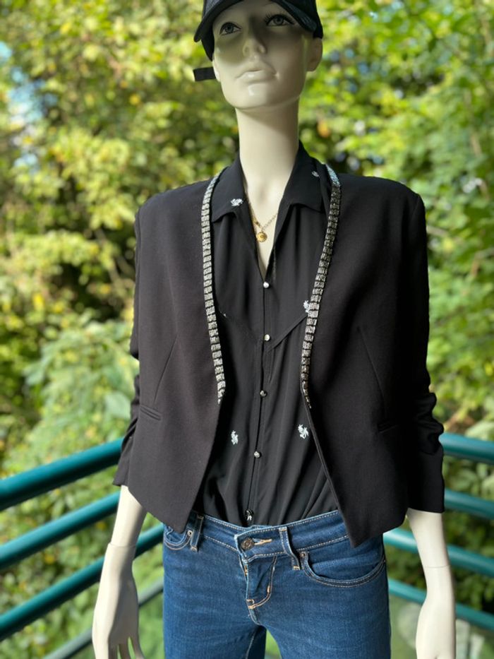 Blazer noir H&M taille 38 avec détails en perle au niveau de la couture Manche retroussée Jamais portée #blazernoir #blazerhm #blazerperles https://www.vinted.fr/member/757513-melinda59150