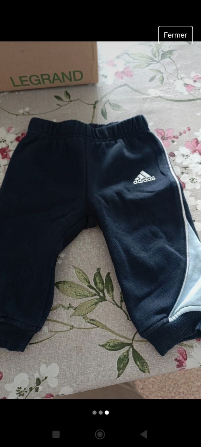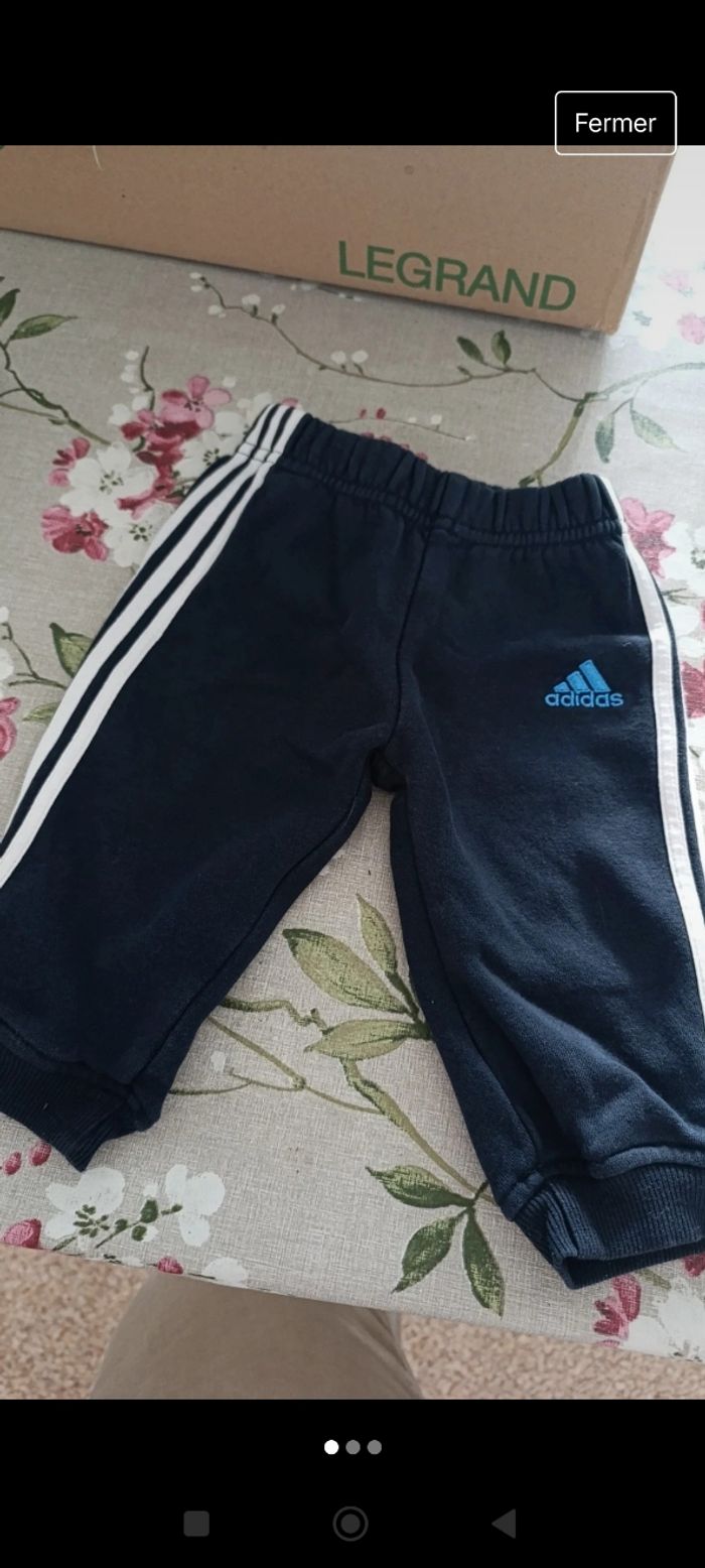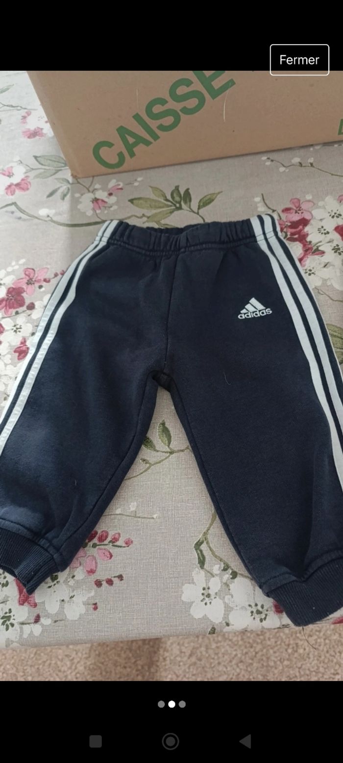 Bonjour, je vend pantalon de jogging bébé de marque adidas en bon état . Taille 3/6 mois. Prix 8€ les 3