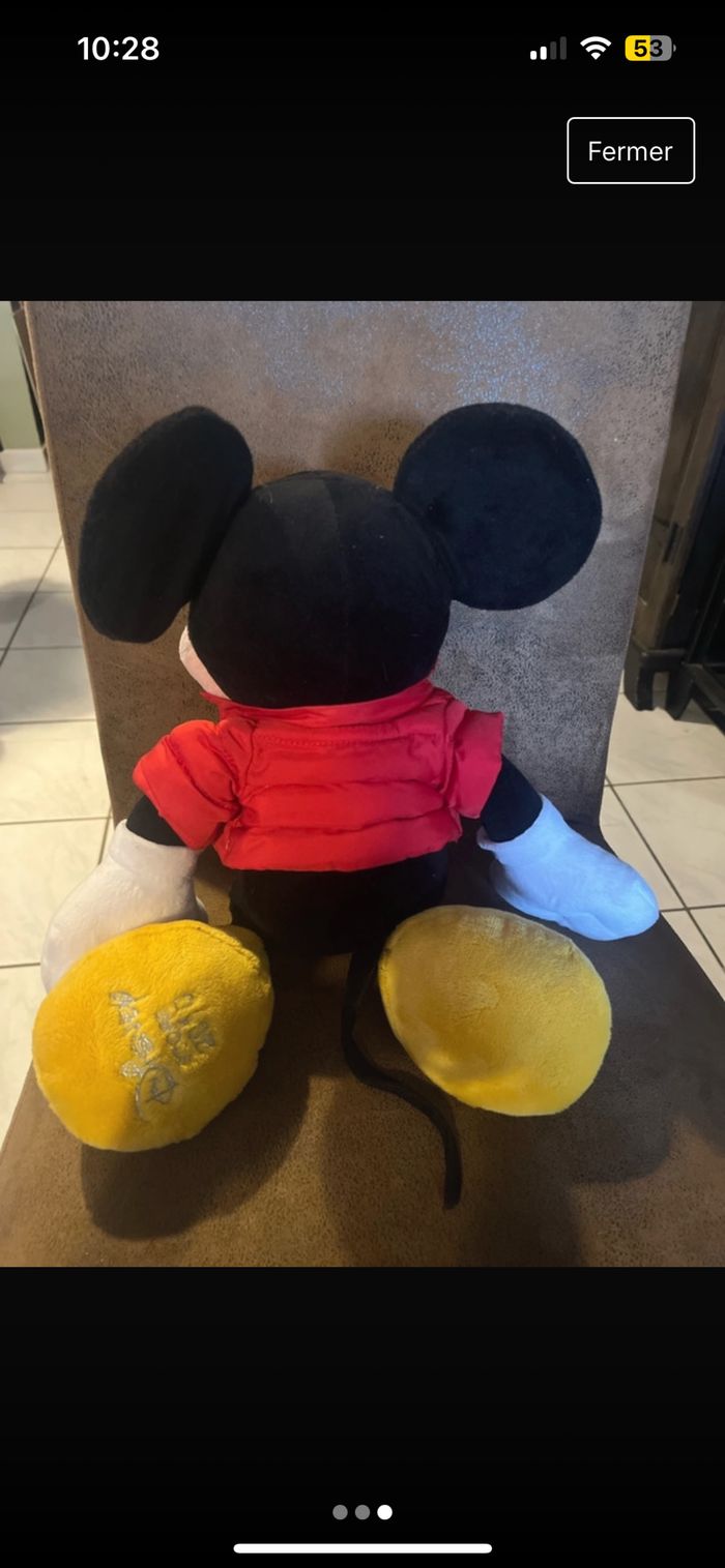 Peluche Mickey édition Disney store 2010 45 cm. Mon fils de 15 ans ce séparent de sa grande collection de Mickey.