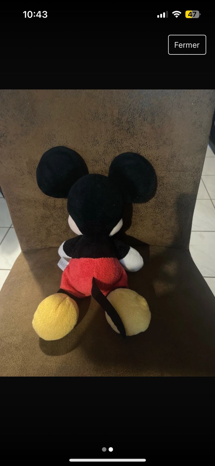 Peluche Mickey 30 cm . Mon fils de 15 ans ce séparent de sa grande collection de Mickey.