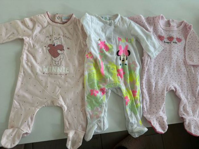 Lot de 3 pyjamas manches longues Taille 1 mois 2 fermetures derrière, 1 fermeture devant État impeccable Disney baby