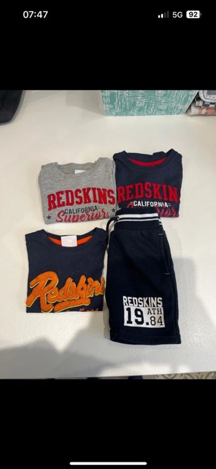 Lot Redskins kids garçon 2 ans comprenant 3 tee shirt Redskins kids et un short en coton Redskins kids le tout en très bon état à noter quelques bouloches sur le short