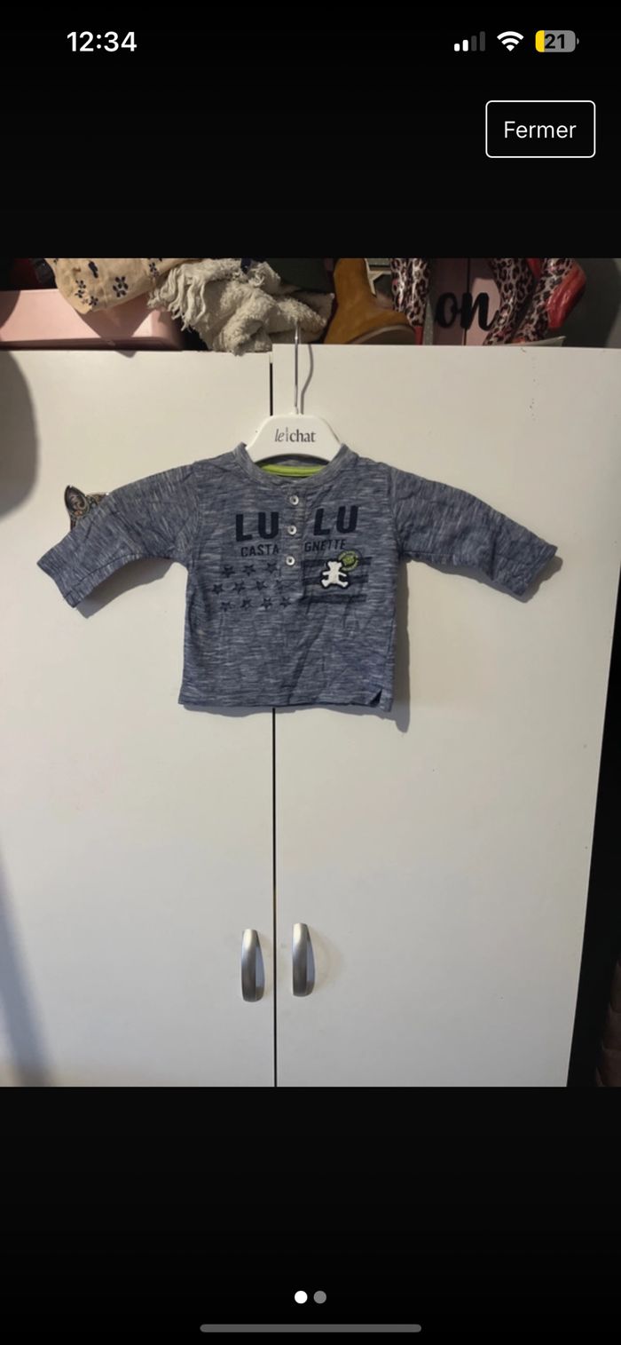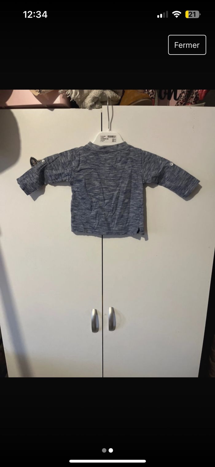 Haut bleu gris Lulu Castagnette. Taille 3/6 mois