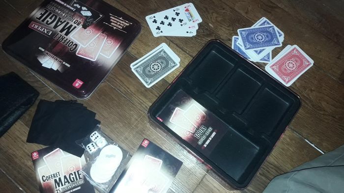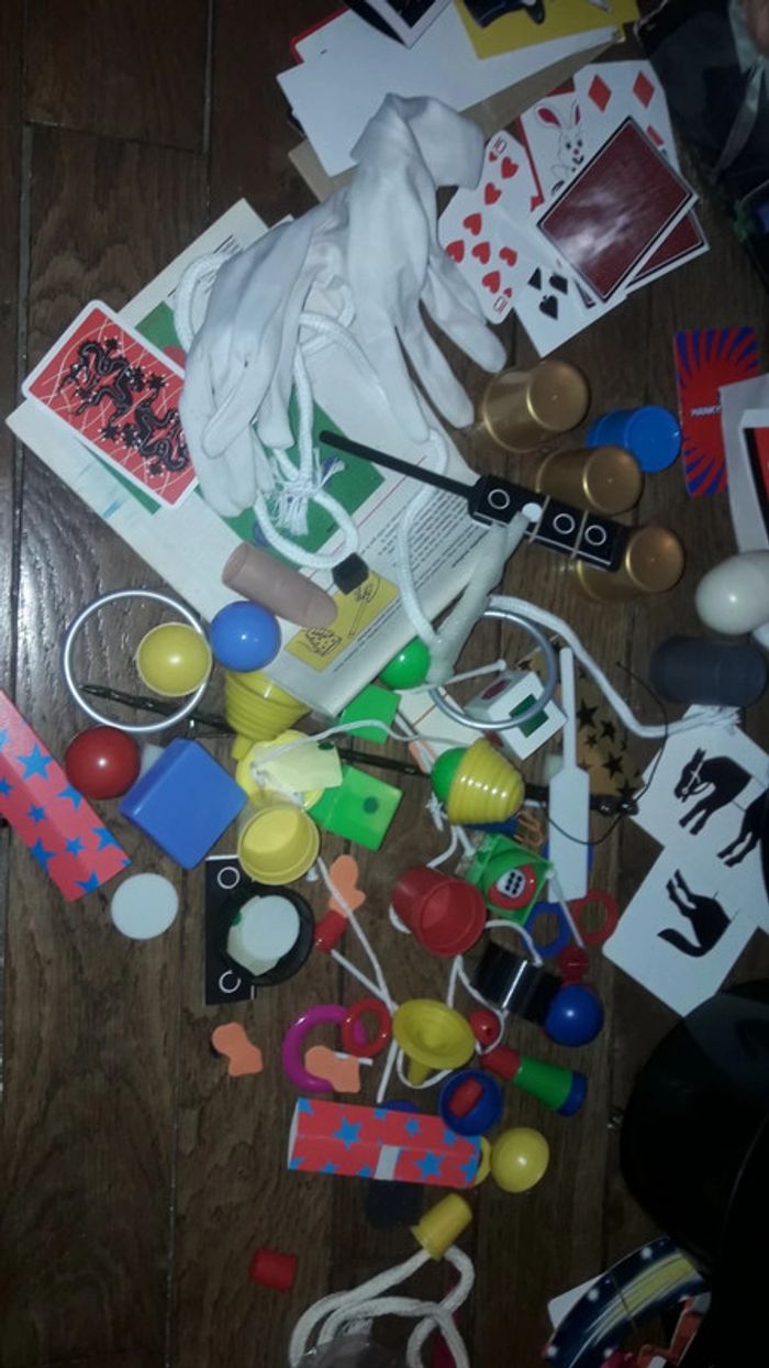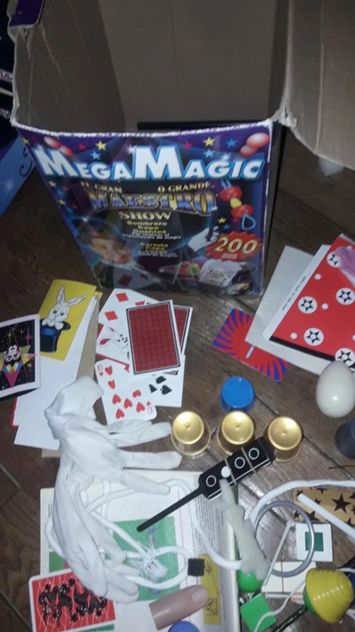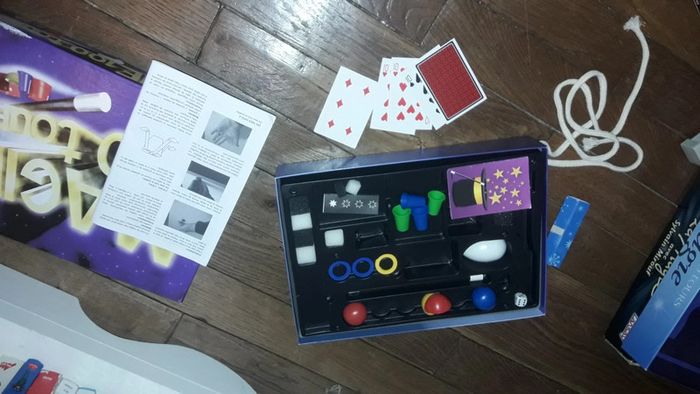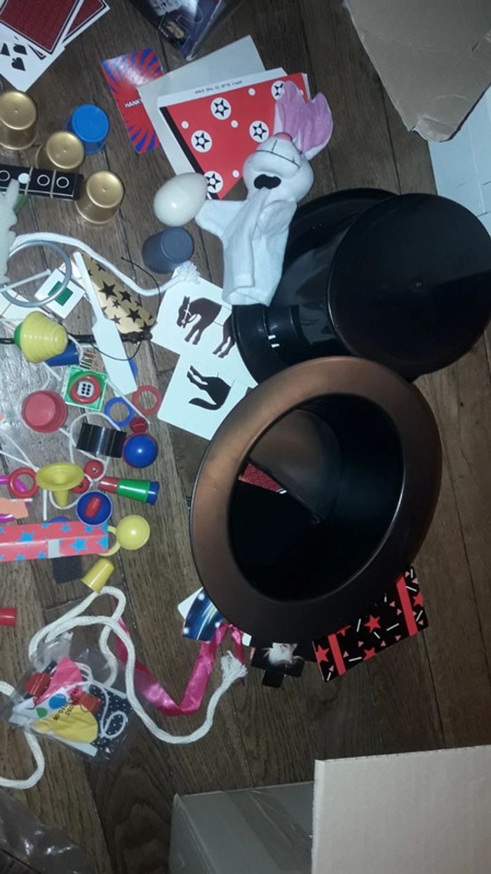 Ce lot prends le contenue d au moins 6 boites de jeux de magie differents Il y a des modes d'emploi des tours de magie Tout les objets sont mélangés Chapeaux cape baguettes gants Lot indivisible Prix ferme Voir photo