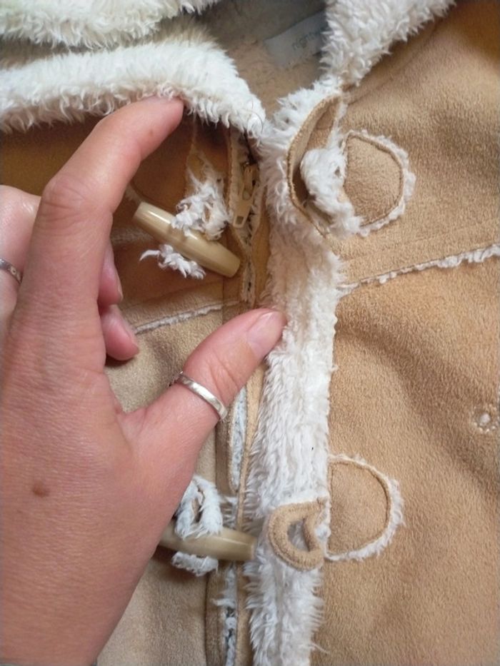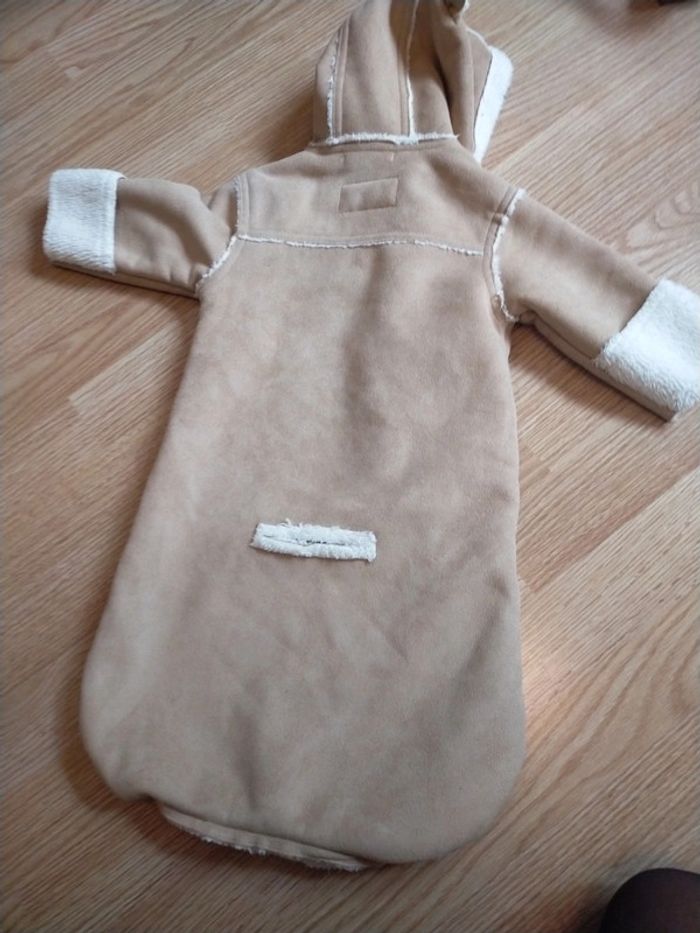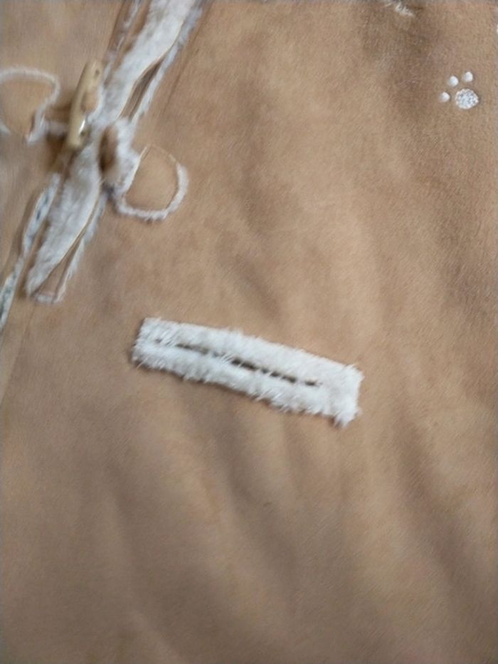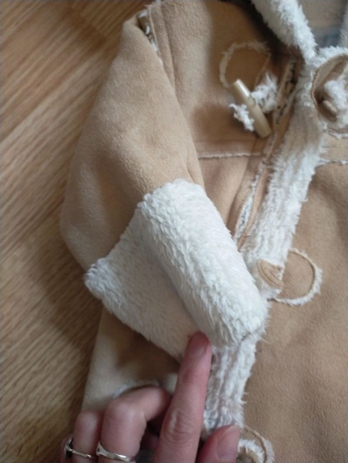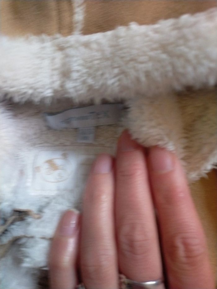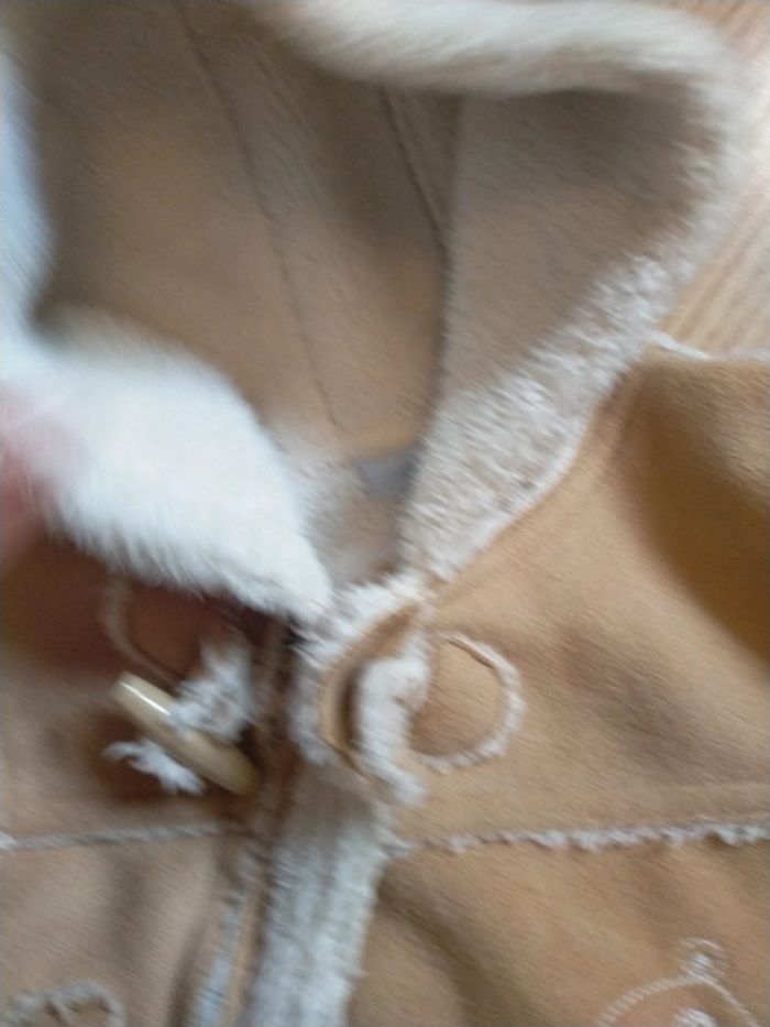 L'étiquette indique 24-36 mois mais c'est clairement beaucoup plus petit, plutôt 6-12 mois. Effet peau retournée. Entièrement doublée fourrure blanche. Très mignon. Comme neuf