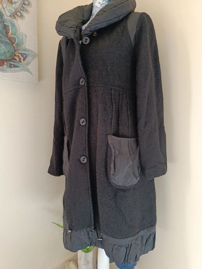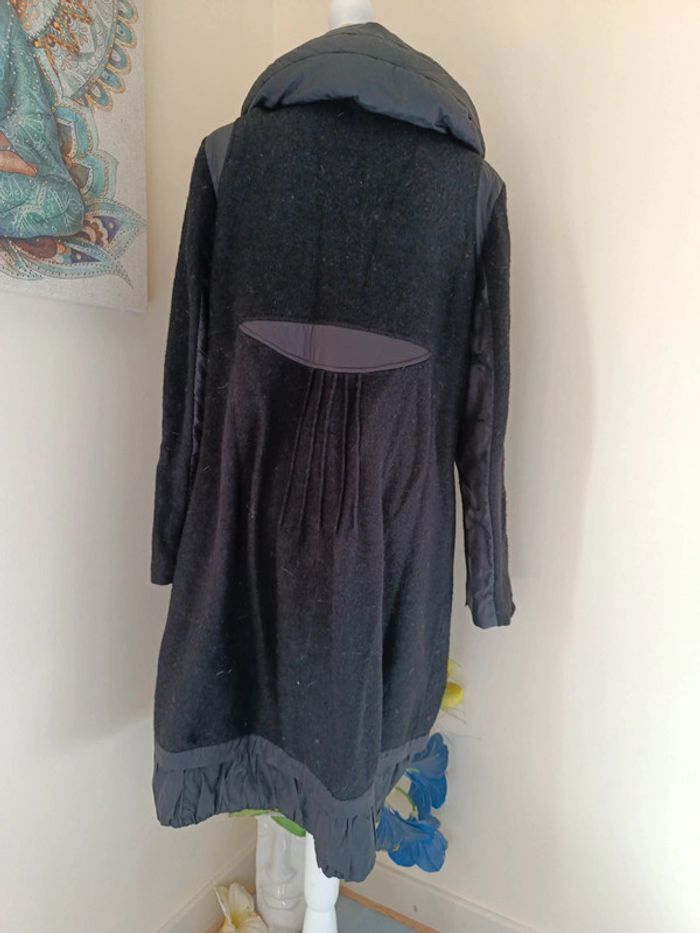 Manteau long noir, t 42 étiquette manquante, grand col, tbe Dimensions, 44 cm d épaule à épaule