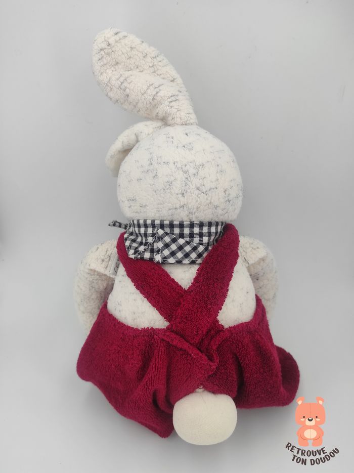 🐇 Peluche Doudou Lapin Blanc avec salopette bordeaux et bandana à carreaux, collection Catimini par Moulin Roty 📏 Dimension : 30 cm environ ✨ Occasion, Très bon état 🧼 Lavé avec lessive hypoallergénique 👀 Vous achetez le doudou que vous voyez sur les photos.