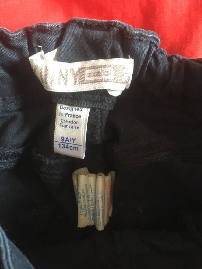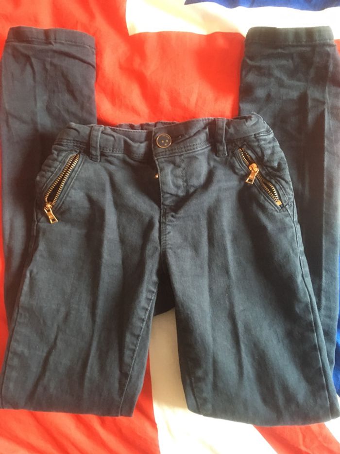 Jean en toile skinny bleu marine poches avant avec fermeture éclaire. Okaïdi. Occasion. Très bon état général. Taille 9 ans.