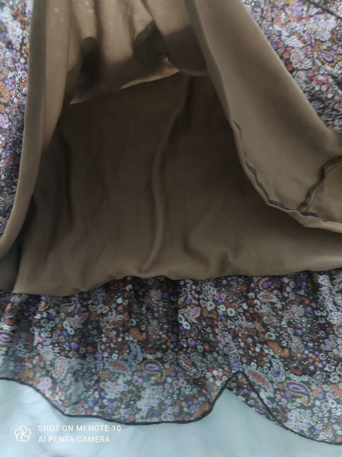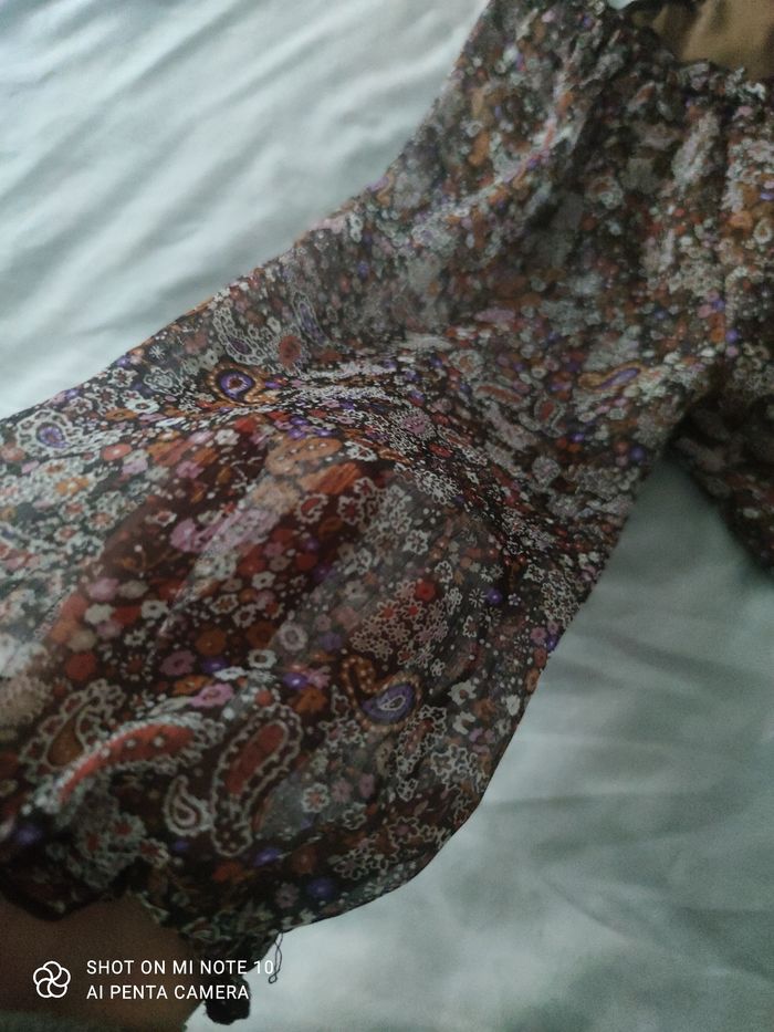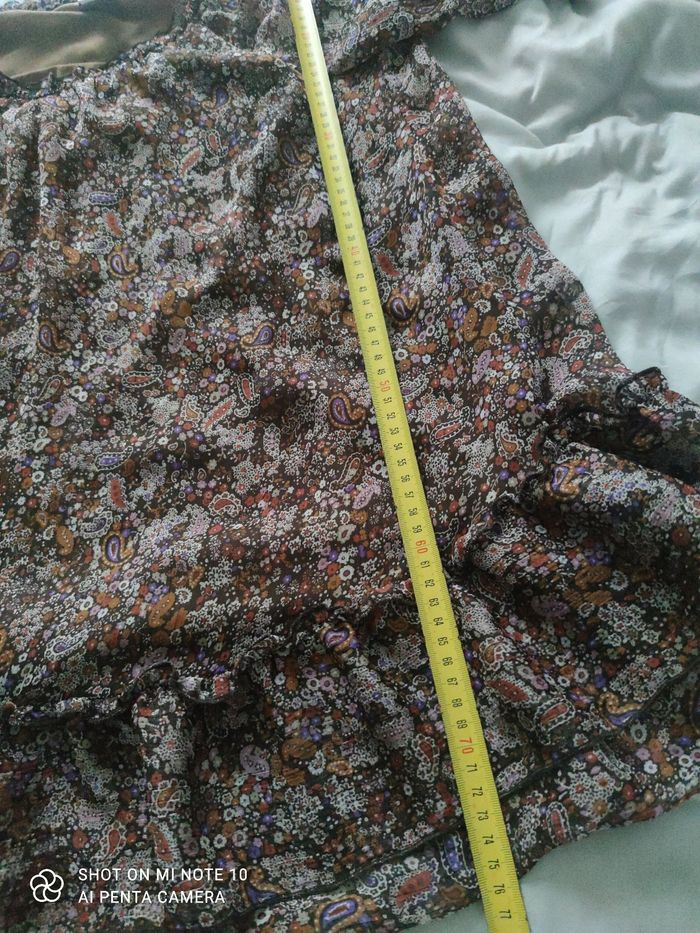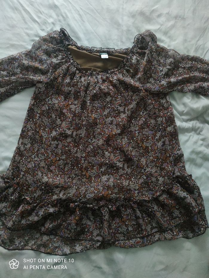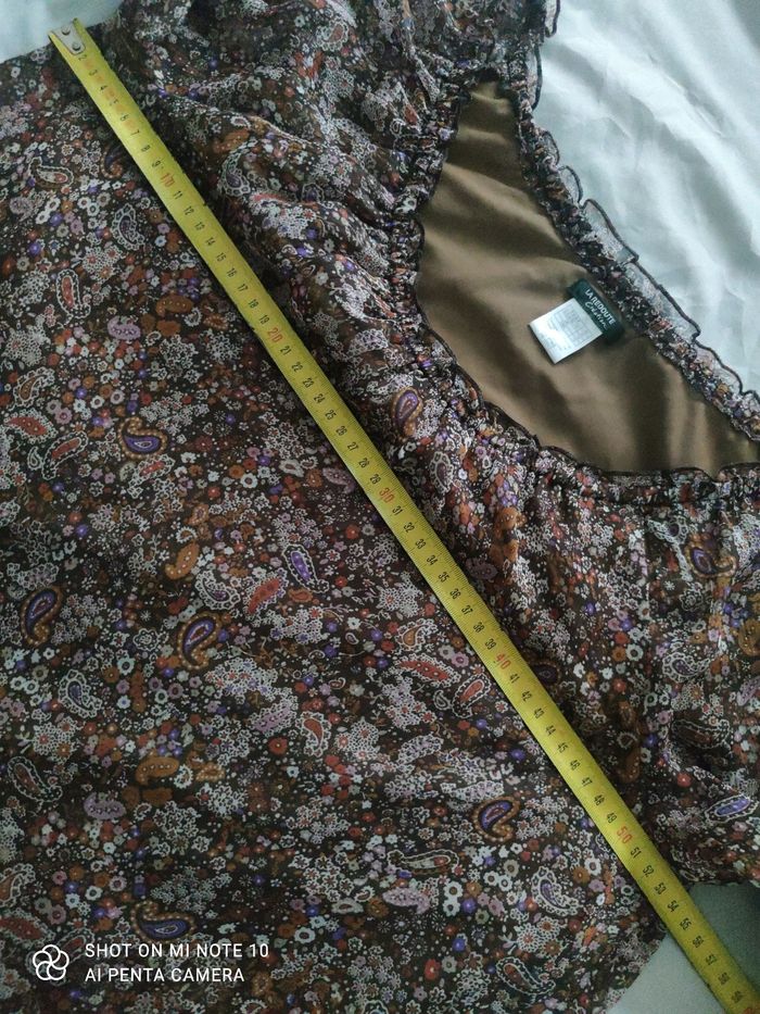 Top haut femme taille 42 Couleur marron avec motif Tissus très fin Manche 3/4 Très bonne état